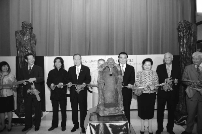 由中國文化部、中國常駐聯(lián)合國代表團(tuán)共同主辦,中國藝術(shù)研究院承辦,美中關(guān)系全國委員會、南京大學(xué)協(xié)辦,中國美術(shù)家協(xié)會、英國皇家雕塑家協(xié)會支持的“文心鑄魂——吳為山雕塑藝術(shù)國際巡展· 聯(lián)合國特展”于9月4日在聯(lián)合國總部大廈開幕。聯(lián)合國秘書長潘基文夫婦、中國常駐聯(lián)合國代表團(tuán)大使李保東夫婦、聯(lián)合國副秘書長費爾特曼,以及近100個國家的外交官,華人華僑代表,美國教育界、文化界、商界及知名藝術(shù)家200余人參加了開幕式。