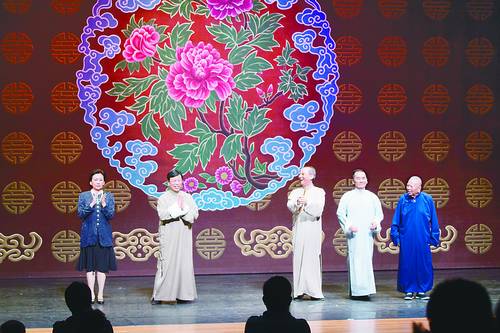 這次的紀念演出,老中青三代演員反復斟酌、精心安排了5段相聲。尤其郝愛民、賈冀光、丁廣泉3位,捧逗結合,“打鐵”演出,每人足足兩段節(jié)目,旨在向臺灣人民進行全面展示。而負責開場的劉增鍇、姬天語師徒,是臺灣相聲開拓者之一吳兆南的高足。他們改編的《新俏皮話》既巧妙地結合了當?shù)氐娘L土人情,引得臺下陣陣哄笑;也在節(jié)目中著意強調為本次活動特意設計的桌圍子所含的寓意。場面上那醒目的四個字“相聲傳統(tǒng)”,代表的不僅僅是“傳統(tǒng)相聲”本身,更昭示著在相聲產(chǎn)生發(fā)展的150多年間,精華如薪火,代代相頌傳,而作為青年演員理所應當在承襲中繼續(xù)發(fā)展,走得更好更遠。