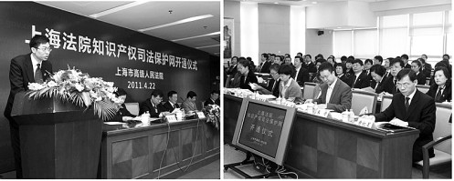 2011年4月22日,上海高院舉行了上海法院知識產權司法保護網開通儀式。 孟招祥 攝