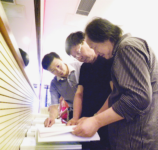 專家在南京市六合區“中國民歌之鄉”評審會現場查閱藝術檔案