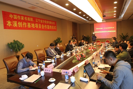 中國作家書畫院、遼寧金沙投資有限公司本溪創作基地項目合作簽約儀式現場