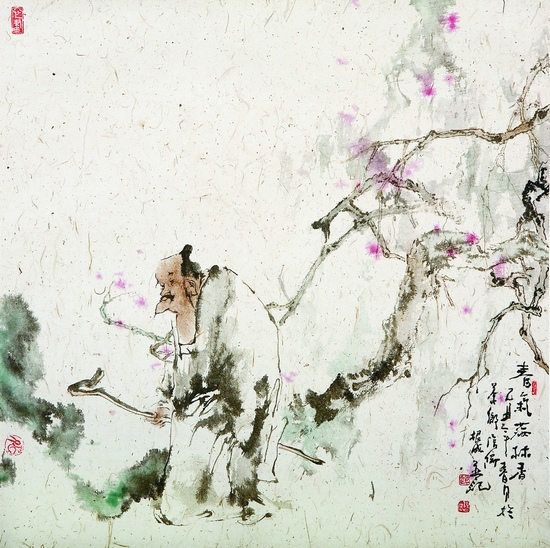 前者滿幅構圖,色彩艷麗,花香鳥語,滿紙生動;后者大虛大實,色彩淡逸,委婉含蓄,如歌如泣。這兩幅不同風格、不同表現手法的作品之所以感人,都因為他們立足于生活的真實而比生活更集中、更典型、更具有代表性,“妙在似與不似之間”。