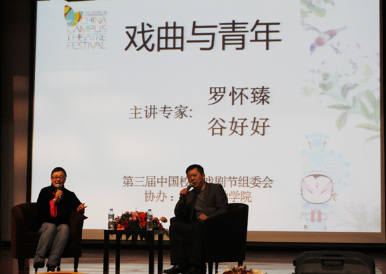 10月23日,在第三屆中國校園戲劇節(jié)活動期間,中國劇協(xié)副主席、上海市劇協(xié)主席羅懷臻和上海昆劇團副團長、第23屆中國戲劇梅花獎獲得者谷好好一同走進上海金融學院,為上海金融學院的師生帶來了一場題為“戲曲與青年”的論壇。