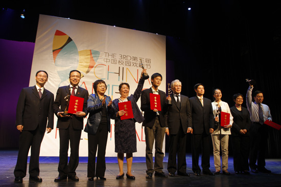 獲得第三屆校園戲劇節“中國戲劇獎·校園戲劇獎”優秀劇目獎專業組代表與頒獎嘉賓合影