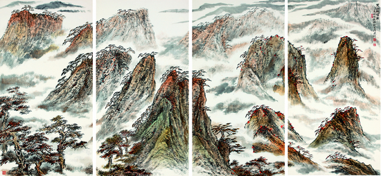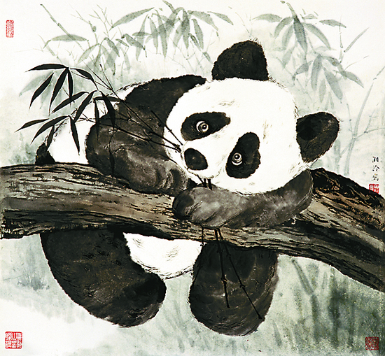 此次,與黃君璧畫作一同展出的是黃湘詅以九寨、黃山和熊貓等為題材創作的20余幅作品。童年時時守在父親的畫案前,受到父親耳濡目染的影響,黃湘詅的丹青生涯與生俱來?,F為深圳畫院特聘畫家的她,舞動手中的畫筆,不但描繪出了九寨絢爛多姿的美景、黃山奇偉瑰麗的風光,更用無限的愛憐與感動,描繪出心中憨態可掬的熊貓。“在熊貓養殖中心看到了許多可愛的熊貓,它們所流露的憨傻和可愛,就像童年的我?!秉S湘詅說:“正是這種見到親人的心情,讓我感到世間的另一種溫暖。每一次我來到大陸,走進這些在我童年父親畫作中的真山真水時,眼前時時浮現父親親切的笑容、揮毫不息作畫的勤奮身影,這一草一木、一山一水仿佛是深沉博大、親切溫暖的父愛胸懷,徜徉在此間的是揮灑不去的血肉親情,是源源不斷的寫意情懷?!薄叭藗兺鶑乃嬓茇埧蓯鄣暮B中,看到黃湘詅可愛的童真。這樣一種情境的表達,是山水題材難以實現的,因此,她反復畫各種姿態。顯然,黃湘詅沒有滿足于白云堂已有的成熟風格,而是在不斷地探求,以另辟蹊徑獲得她自己的藝術地位,這也正是我們欣賞她的原因之一?!瘪緞側绱嗽u價。