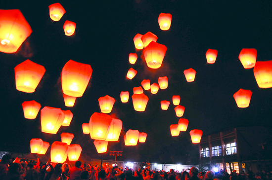 平溪位于新北市偏遠山區(qū)。元宵節(jié)至,村民釋放天燈以報平安,后逐漸演變成今日北臺灣元宵時節(jié)最具民俗色彩的祈福活動。天燈亦稱孔明燈,以綿紙糊罩、竹簽作箍,形狀恰似一只四角的紙袋,上面寫著人們的祈愿。施放時將燈腳下含油的金紙點燃,待熱氣充滿即可升空。 邱成穩(wěn) 攝 摘自文化藝術(shù)出版社2012年9月出版的《臺北道地 地道北京》