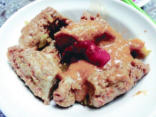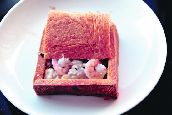 棺材板:臺南的經(jīng)典小吃。做法是將吐司面包挖空,填充豬肝、鮮姜、洋蔥、柿椒、臘腸、年糕片等炒制菜品,再蓋上炸好的吐司片。由于外形酷似棺材,這道美食小吃被謔稱為“棺材板”。 摘自文化藝術(shù)出版社2012年9月出版的《臺北道地 地道北京》