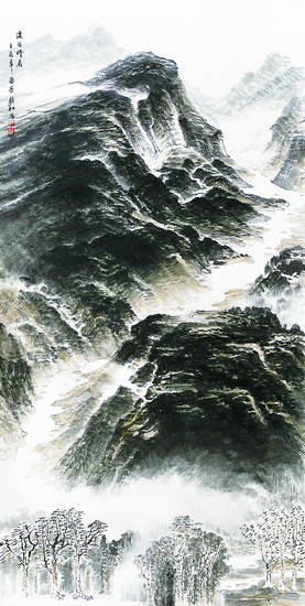 溪谷晴晨(中國畫)136cm×68cm 許欽松