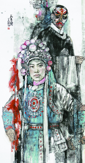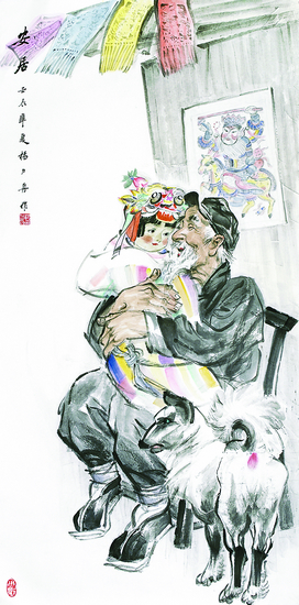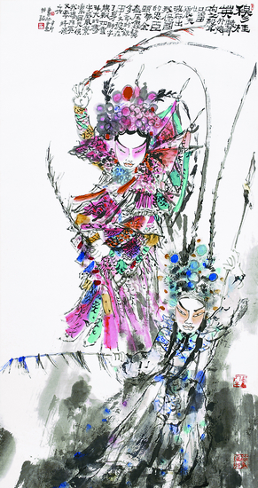 矮個子蜘蛛班長和他的高個子媳婦(中國畫) 151cm×82cm 馮 遠