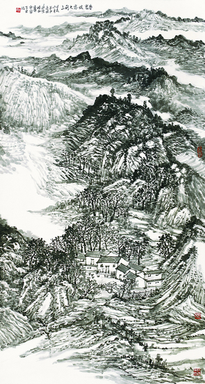 太行深處有人家(中國畫)180cm×96cm 何加林