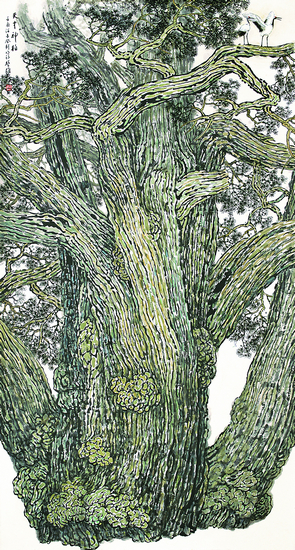 天中神柏(中國畫)180cm×96cm 方楚雄