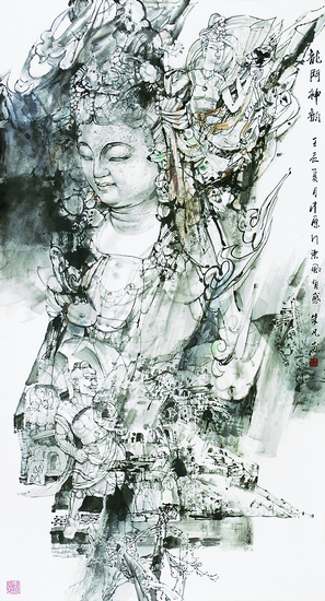龍門神韻(中國畫)180cm×96cm 朱 凡