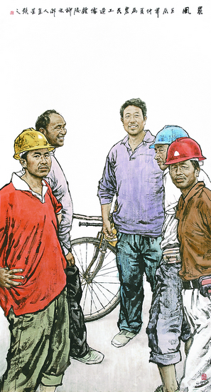 紅旗渠青年洞英姿(中國畫)180cm×96cm 丁 杰