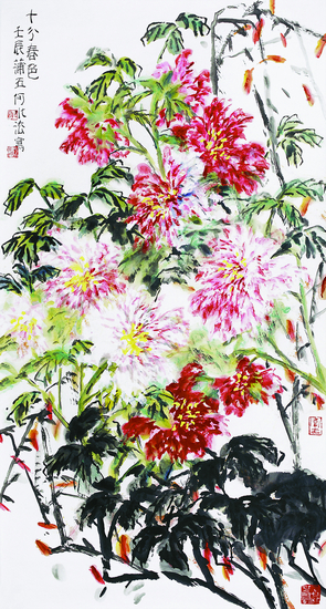 洛陽牡丹十分春色(中國畫)180cm×96cm 何水法