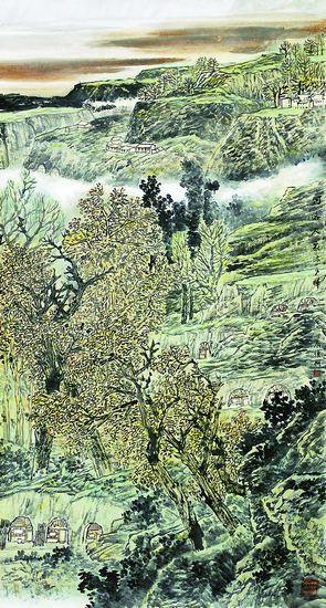 河洛人家沐夕暉(中國畫)180cm×96cm 張復興