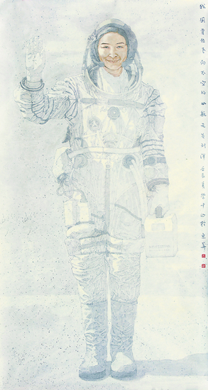 我國首位飛向太空的女航天員——劉洋(中國畫)180cm×96cm 韓學中