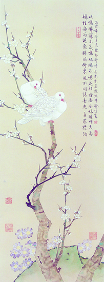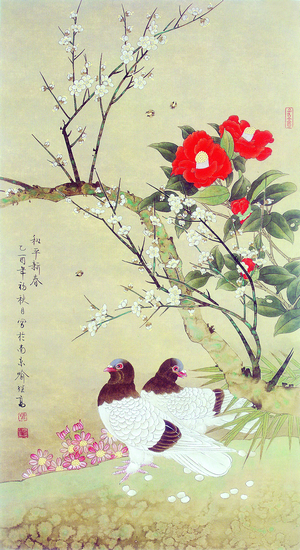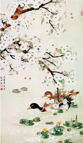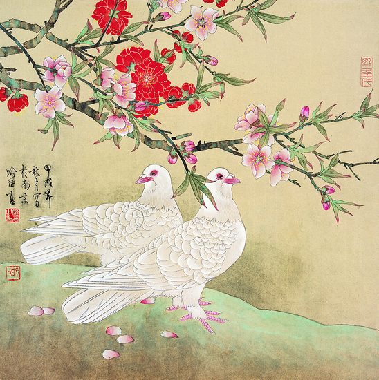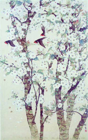 真正使喻繼高名聞全國的代表作是創作于上世紀70年代的《荷香鴨肥》和《梨花春燕》。前者富麗繁茂而親切和諧,后者雅潔如雪而動人心弦,由此揭開了他的兩種審美風格取向。從此,他的作品頻繁地參加全國大展和應邀到國外展出,走進中南海、國務院、人民大會堂、天安門城樓、釣魚臺國賓館、全國政協等重要場所,更走向了廣大人民群眾之中。1984年,他被任命為省國畫院副院長;1987年,被選為中國工筆畫學會副會長、江蘇省花鳥畫研究會名譽會長;1993年當選為省美協副主席。1997年,喻繼高個人畫展在美國紐約聯合國總部大廳展出,這是他繼1986年在北京中國美術館個展之后的又一次成功之展。