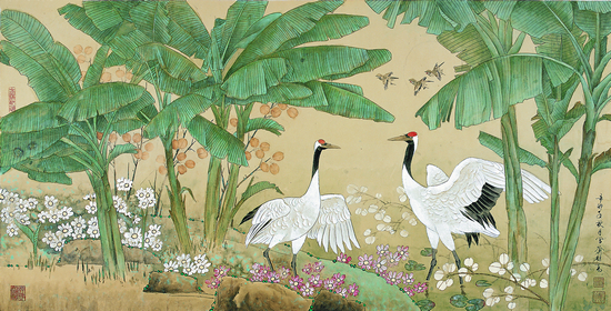 蕉蔭雙鶴悅秋 143×246cm 2011年