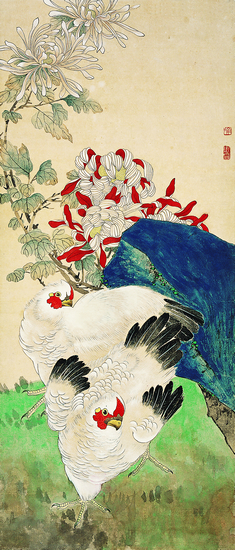 秋菊白雞(臨陳之佛) 82×40cm 1979年