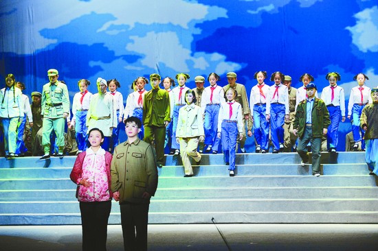 慶祝香港回歸的文藝晚會,奧運(yùn)會的開幕式演出……每每遇到國家大事的文化演出節(jié)目,由王莘作詞作曲的歌曲《歌唱祖國》幾乎都會列入演出節(jié)目單,掀起演出的高潮,當(dāng)“五星紅旗迎風(fēng)飄揚(yáng)”的旋律奏響,國人的民族自豪感油然而生。日前,北京曲劇團(tuán)將王莘創(chuàng)作《歌唱祖國》的全過程創(chuàng)作成名為《歌唱》的曲劇搬上舞臺,在北京天橋劇場首演。這部青春版《歌唱》由北京人藝著名導(dǎo)演顧威執(zhí)導(dǎo)、北京曲劇作曲家戴頤生擔(dān)任作曲,“80后”演員楊海崗飾演王莘。這出戲經(jīng)過7場商演和3場北京優(yōu)秀劇目展演,10場演出上座率頗高,并受到一致好評,結(jié)尾處演員的合唱幾乎場場引發(fā)臺上臺下的集體大合唱,場面激動人心。據(jù)悉,該劇已入選由北京市委宣傳部、北京市文化局主辦的“慶祝黨的十八大勝利召開——2012年北京金秋優(yōu)秀劇目匯報(bào)演出”劇目,將于11月21日、22日在解放軍歌劇院登臺亮相。
