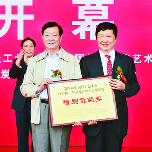 梁嘉琨代表中國煤炭工業(yè)協(xié)會、中國煤礦文聯(lián)向展覽的成功舉辦表示祝賀。他說:“徐礦是中國井工開采歷史最長的煤炭企業(yè)之一,新中國成立后,為祖國經(jīng)濟建設(shè)和煤炭工業(yè)改革發(fā)展作出了歷史性的貢獻(xiàn)。特別是進(jìn)入新世紀(jì)以來,徐礦集團(tuán)以大無畏的創(chuàng)業(yè)精神,很好地破解了煤炭資源枯竭的難題,為企業(yè)插上了騰飛的翅膀。第四屆中國煤礦藝術(shù)節(jié)集郵展開幕之際,恰逢徐礦開采130周年慶典之時,我們都感到非常高興。這不僅是徐礦人的節(jié)日,也是550萬煤礦工人自己的節(jié)日。走過百年的徐礦集團(tuán)不僅為國家的經(jīng)濟建設(shè)貢獻(xiàn)了不可或缺的煤炭資源,而且在文化建設(shè)方面也取得了巨大成就,積淀了濃厚的獨具特色的煤礦文化。隨著煤礦職工生活水平和文化素質(zhì)的提高,集郵也逐漸成為群眾性文化活動的重要內(nèi)容,形成了以個體為主開展文化活動最為龐大的一支生力軍,并在國內(nèi)、國際的集郵大賽中屢獲佳績,成果喜人。煤礦舉辦大型文化藝術(shù)活動、各企業(yè)集團(tuán)舉辦大型節(jié)日慶典,都融入了集郵的元素,發(fā)行了紀(jì)念封、明信片、個性化郵票等,以集郵的方式反映了礦山火熱的生活,謳歌了礦工的高貴品格,弘揚了‘奉獻(xiàn)、寬容、團(tuán)結(jié)、創(chuàng)新’的煤炭精神。”隨后,濮洪九代表第四屆中國煤礦藝術(shù)節(jié)組委會向徐州礦務(wù)集團(tuán)公司頒發(fā)了特別貢獻(xiàn)獎。
