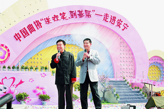 “送歡笑、到基層”是在中宣部和中國文聯的指導下,中國曲藝家協會精心組織和實施的一項公益性文化為民惠民樂民活動。自2005年起,中國曲協連續7年組織數千名知名曲藝家和曲藝工作者深入到革命老區、受災地區、貧困地區、邊疆民族地區以及企業廠礦、軍營哨卡和國家重大工程建設工地,開展慰問演出125場,受益觀眾多達數千萬人,受到基層廣大群眾熱烈歡迎。“送歡笑、到基層”活動始終把社會效益放在首位,堅持公益性質,同時充分發揮曲藝藝術短小精悍、活潑簡便的特點,不需華麗布景、不用高級音響、不必成群伴舞,不給當地群眾增加負擔。小分隊的演員們演出不計報酬、不畏艱辛,常常是跋涉幾百公里,顧不上休息上場就演,充分體現了曲藝工作者“文藝輕騎兵”的傳統本色。