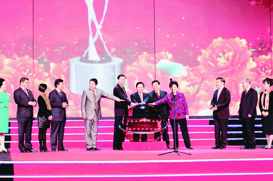 2012年9月15日,孫家正、趙實(shí)、張連珍、石泰峰、林祥國、何權(quán)啟動(dòng)第七屆中國曲藝牡丹獎(jiǎng)?lì)C獎(jiǎng)儀式