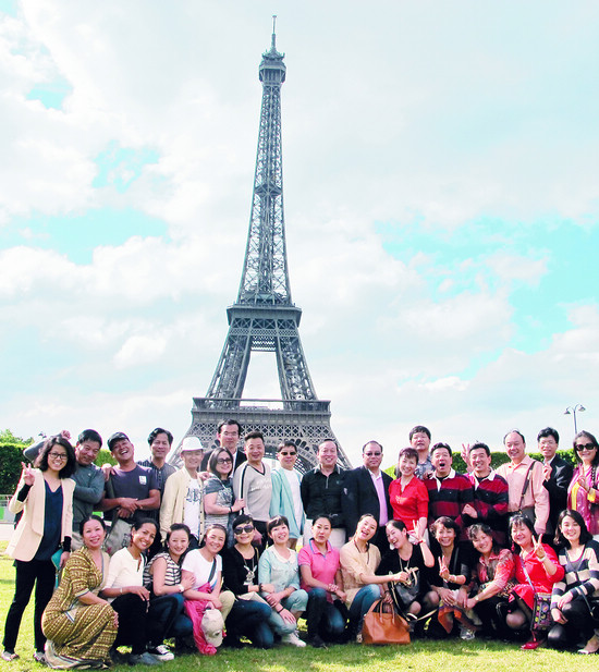 參加第二屆巴黎中國曲藝節(jié)的中國曲協(xié)代表團(tuán)全體成員在埃菲爾鐵塔前合影留念