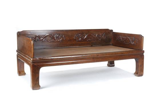 清早期 三屏風(fēng)獨(dú)板嵌雕龍紋圍子羅漢床