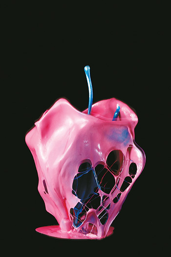 如今我的創作已不局限于特定的拍攝方式或輔助工具。在構思過程中,怎樣達到理想中的形態、質感、色彩與光線才是我關注的重點,而不是將注意力過多分散于拍攝設備上,這需要耐心細致的前期準備與測試。例如布光,在經過反復拍攝后可得出結論;大體上,透明的液體更適合逆光進行照明,凸顯液體的晶瑩剔透;而透光度較差的液體則適合從正面與側面進行照明以勾勒其形態。不同液體有著截然不同的特性,在單純使用清水和牛奶后,我著手對各類液體進行混合測試,可多數“完美構思”與拍攝后的效果大相徑庭,打擊與失落感不言而喻。經過長時間的拍攝,事實證明所有的實踐累計哪怕是失敗的,對我而言都是難能可貴的經驗。“如何不重復上一次的作品?”是我腦海中烙印最深的一個念頭,這個簡單的念頭執行起來卻一點也不簡單。