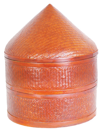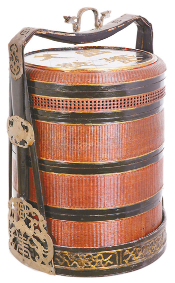 這只提籃是金再軍在嵊州收購(gòu)來的。那天他在一位農(nóng)戶家拍照時(shí),無意中看到角落里放著一只提籃。此籃用很細(xì)的竹絲編織而成,精密而結(jié)實(shí),它不同于一般的籃子,上面還有籃蓋。這只籃看起來貌不驚人,金再軍卻一眼就喜歡上了。