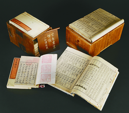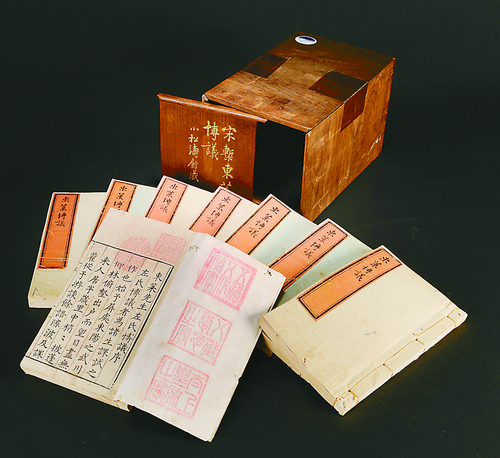 此批善本中亦有明清兩代內(nèi)府及藩府、王府刻書(shū)凡20余部,其中明代內(nèi)府圖書(shū)9部、清代順治朝以至光緒朝刊印內(nèi)府圖書(shū)13部,藩府王府刻書(shū)各一部,均為刊印精美之作。確為難得的是其中一部明嘉靖六年(公元1527年)司禮監(jiān)刻本、宋真德秀撰《大學(xué)衍義》四十三卷中,有明朝末代皇帝崇禎御批讀書(shū)記一段,崇禎御批,為此僅見(jiàn)。“廣韻樓”藏書(shū)中還有數(shù)部前清“天祿琳瑯”遺珍傳世。其中一部明嘉靖刻本宋呂祖謙《詳注東萊先生左氏博議》一書(shū)附原裝書(shū)箱,曾被視為宋版入藏清宮,乾隆五璽俱全,著錄于《天祿琳瑯后編》。書(shū)原裝保存,書(shū)品完整,亦可堪稱市場(chǎng)少有之珍品。