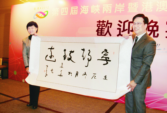 楊承志代表中國文聯向香港藝術發展局贈送書法作品