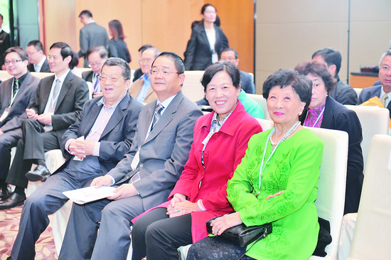 歡迎晚宴上,孫家正分別同來自內地、臺灣、香港、澳門的代表合影。圖為與臺灣代表合影
