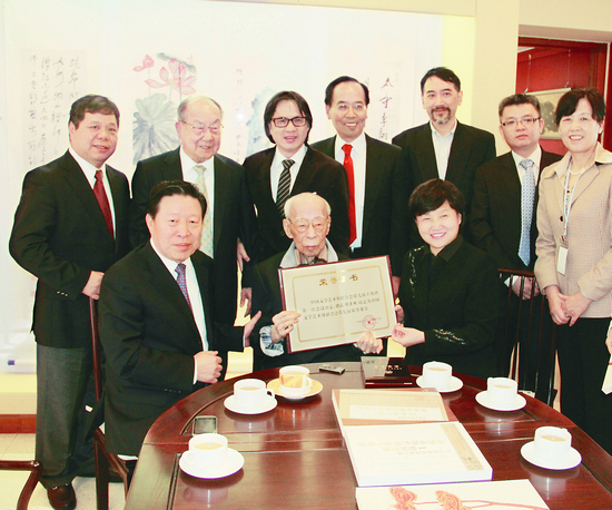 孫家正為饒宗頤頒發中國文聯榮譽委員證書與金質證章