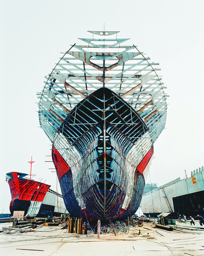 2005年,愛德華·伯汀斯基第一次來到中國,中國的三峽大壩、煤礦、煉鋼廠、造船廠、回收站和壯觀的制造車間等工業廠區給他留下了深刻印象。他用獨特的視角記錄下中國的經濟、中國的發展和中國的生活,他的作品中這些看似冷漠的工業廠區散發出一種怪異卻獨特的美麗。他的大幅彩色相片表達了人類不斷延伸的足跡和物質上我們對這個星球表面的重塑。如果用一個詞匯去描繪愛德華·伯汀斯基的工作,大概會是法語的“Jolie-laide”,即地景傷疤。