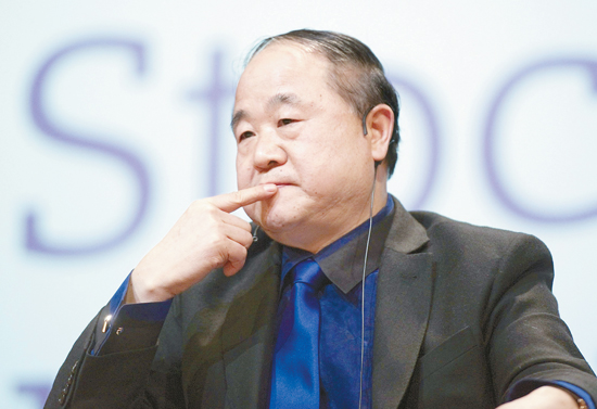 12月9日,在瑞典斯德哥爾摩大學禮堂,2012年諾貝爾文學獎得主莫言在作品