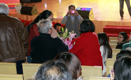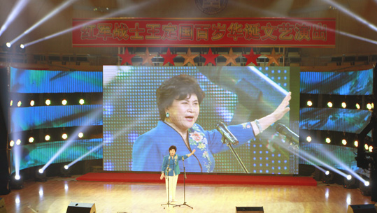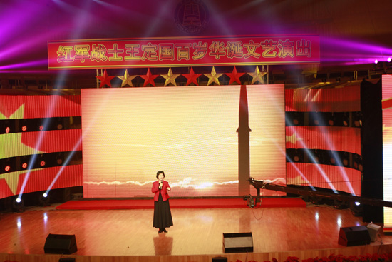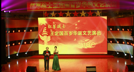 為了貫徹落實黨的十八大報告精神,弘揚愛國主義傳統,由八路軍老戰士文工團主辦的紅軍戰士王定國百歲華誕文藝演出于12月12日下午在中國音樂學院音樂廳舉行。 原中共中央委員、中央宣傳部部長王忍之,原全國人大常委、中央文獻研究室原主任逄先知,原全國人大常委會副秘書長、《求是》雜志總編輯有林,原全國政協科教文衛副主任王巨才,全國政協委員、原中國文聯副主席胡珍等領導和部分抗日老戰士出席觀看了演出。