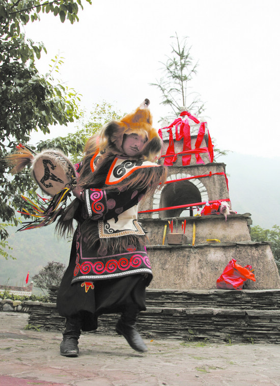 羌族釋比主持的“祭天祈福還愿”儀式