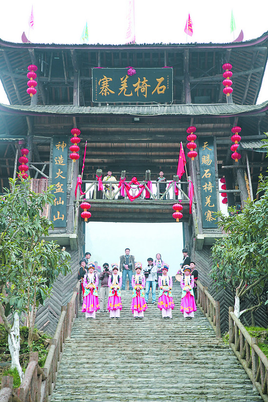 石椅羌寨的迎賓儀式