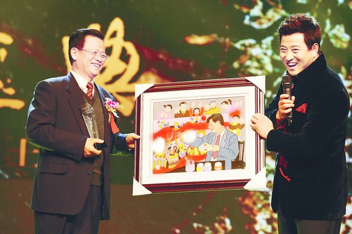 原吉林省政協副主席趙家治為調研農民畫做了數十萬字的筆記,拍攝萬余張圖片,不僅留下許多珍貴的影像資料,還撰寫多篇文章,宣傳推介農民畫,退休后仍自費為農民畫舉辦講座、展覽等。有人稱他是“大官辦小事”,他卻不這么認為。他在頒獎晚會上稱,推廣農民畫不是小事,農民畫是萬花筒,是農民的精神家園,自己有義務為它宣傳。趙家治回憶起2006年,他第一次來到東豐縣看到農民畫,就與農民畫結下了不解之緣?!矮@獎是沾了農民畫的光,沾了農民的光。”吉林省東豐縣當地從事農民畫創作的幾個農民也來到節目現場,并把他們精心創作的一幅農民畫贈送給了趙家治。