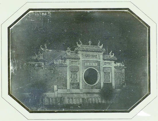 1839年,法蘭西學(xué)院正式宣布攝影術(shù)的發(fā)明,即達(dá)蓋爾法攝影術(shù)。1844年,法國海關(guān)官員于勤·埃迪爾航行數(shù)月到達(dá)中國,用剛剛誕生的達(dá)蓋爾法攝影器材拍攝了一些反映中國澳門、廣州一帶風(fēng)土人情的照片。這也是有史以來第一次把中國的人文景觀用攝影技術(shù)永久地記錄下來。這些中國最早的金屬版照片現(xiàn)存37張,連同于勤·埃迪爾當(dāng)年撰寫的拍攝日記,保存在法國攝影博物館里,此前從來沒有到中國展出過。