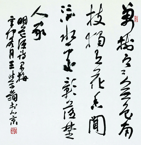 他對西方藝術理論和創(chuàng)作對于書法的“浸染”,似乎比邵巖更“開明”。用西方的構成方式或者古代的書論系統(tǒng)來解讀書法,無論是最古典還是最現(xiàn)代的方法都可以,關鍵是我們能否利用得恰到好處。“就好像一個會外語的人很少會固執(zhí),因為他會換一種方式想問題,不會很偏激。”