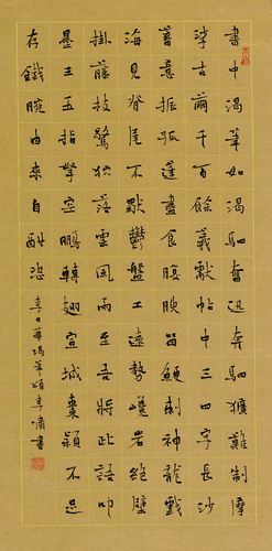 總體而言,我的楷書創作首先經歷了從魏書到唐楷,又從唐楷回歸魏書的學習過程。而根植于我對楷書壯美內質的追求,對于當代楷書立足傳統、尋求創新的信念,選擇適合自我性情的古代碑帖,以壯美內質為融合的主要準繩,以唐楷、魏書相互改造,從而尋找屬于自我、呼應時代的正大楷書。對于具有壯美內質楷書風氣的呼喚是時代精神的要求,是民族文化復興的要求。而自我創作中相關于此的現實探索,則希望對于當代楷書創作者具備一定的參考意義。