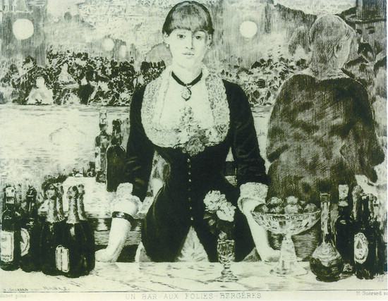 《伯熱爾大街叢林酒吧》(上為油畫、下為版畫)