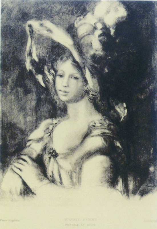 《迪耶泰勒夫人的半身像》(上為油畫、下為版畫)