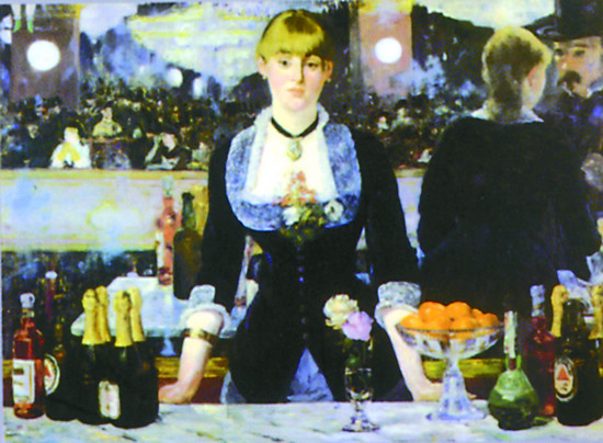 馬奈的經典作品《伯熱爾大街叢林酒吧》以一位平凡的酒吧女郎為題材,以她所處的巴黎夜場為背景,畫中人物的身體與深情形成強烈對比,油畫色彩鮮艷奪目、光線交錯迷離,而版畫則褪去了色彩的光華,如同一張黑白照片,將一切繁華再次定格為發人深省的瞬間,畫面內涵也隨之逼近觀者的思緒;在雷諾阿的藝術創作中,女性肖像反復出現,版畫《迪耶泰勒夫人的半身像》雖然洗去了鮮亮的色彩,仍然不失畫家對年輕女性細致入微的觀察與刻畫;還有,版畫《刺繡女工們》細膩的光影效果使得畫面空間和人物具有如油畫般的寫實性,版畫《風景》用迅疾的筆觸表現出對鄉村一角風景的動態捕捉,版畫《在劇院里》模擬水彩效果傳神地捕捉到劇院里紳士、淑女們交談的一瞬。展覽中,這些黑白版本的版畫圖像再次重現了印象主義的杰作。
