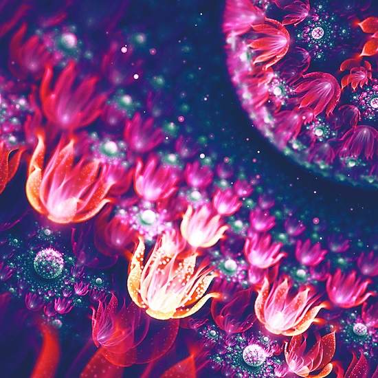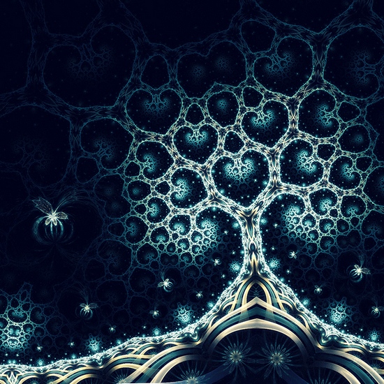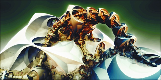 分形實際上是對宇宙中萬物的一種抽象,是對本質的提煉。既然分形是描述大自然最有利的數學工具,豈不是最絕妙的藝術創作工具?大自然中已知和未知的結構,都可以用分形方法繪制出來,將抽象的概念形象化藝術化再現,讓事物更接近其本質上隱藏的美感。
