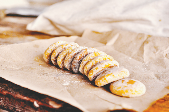 新鮮優(yōu)質(zhì)的云片糕細膩柔軟,猶如凝脂。25片一扎,每片長寬一致,薄而均勻