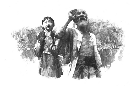 作為學(xué)院派畫(huà)家,李晨技術(shù)功底深厚,造型能力極強(qiáng),悟性也高。他有豐厚的文學(xué)修養(yǎng),在小說(shuō)作品中能看到不同的形象和畫(huà)面,進(jìn)而精準(zhǔn)把握原著的精神內(nèi)核。以《邊城》為例,他的描繪能讓人對(duì)湘西,對(duì)翠翠、老船工等形象有更新的認(rèn)識(shí)。他視野開(kāi)闊,能將不同國(guó)度、不同時(shí)代的人物作還原式的描繪。他曾為許多世界名著創(chuàng)作插圖,將特定人物在特定地點(diǎn)、特定時(shí)間、特定氛圍的神情、氣質(zhì)“真實(shí)”地表現(xiàn)出來(lái),這很不容易。如果沒(méi)有淵博的知識(shí)面,很容易畫(huà)得“千人一面”,但他卻能畫(huà)出不同形象的個(gè)性。與此同時(shí),李晨不僅致力于把握人物的形,更關(guān)注于表現(xiàn)人物的神韻、氣質(zhì)、風(fēng)采。西畫(huà)的素描訓(xùn)練,是要達(dá)到準(zhǔn)確造型的目的,也就是“形似”,而中國(guó)畫(huà)則更強(qiáng)調(diào)“神似”,追求“形”之上的神韻和氣勢(shì)。李晨在表現(xiàn)人物的心靈世界時(shí),動(dòng)用中國(guó)畫(huà)寫(xiě)意的手法,超越了人物的基本形象。